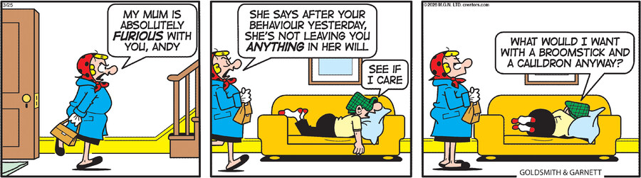 Andy Capp, the irrepressible pub dweller created by Reg Smythe, first appeared in the Daily Mirror newspapers of England in 1958 as a cartoon panel. It quickly became a favorite throughout the country, as readers everywhere could identify with the good-for-nothing Andy and his smart-mouthed wife, Flo.