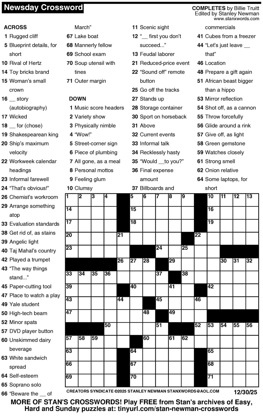 Stan Newman crafts a fresh and challenging puzzle every day of the week! Stay sharp and challenge yourself to solve each and every one.